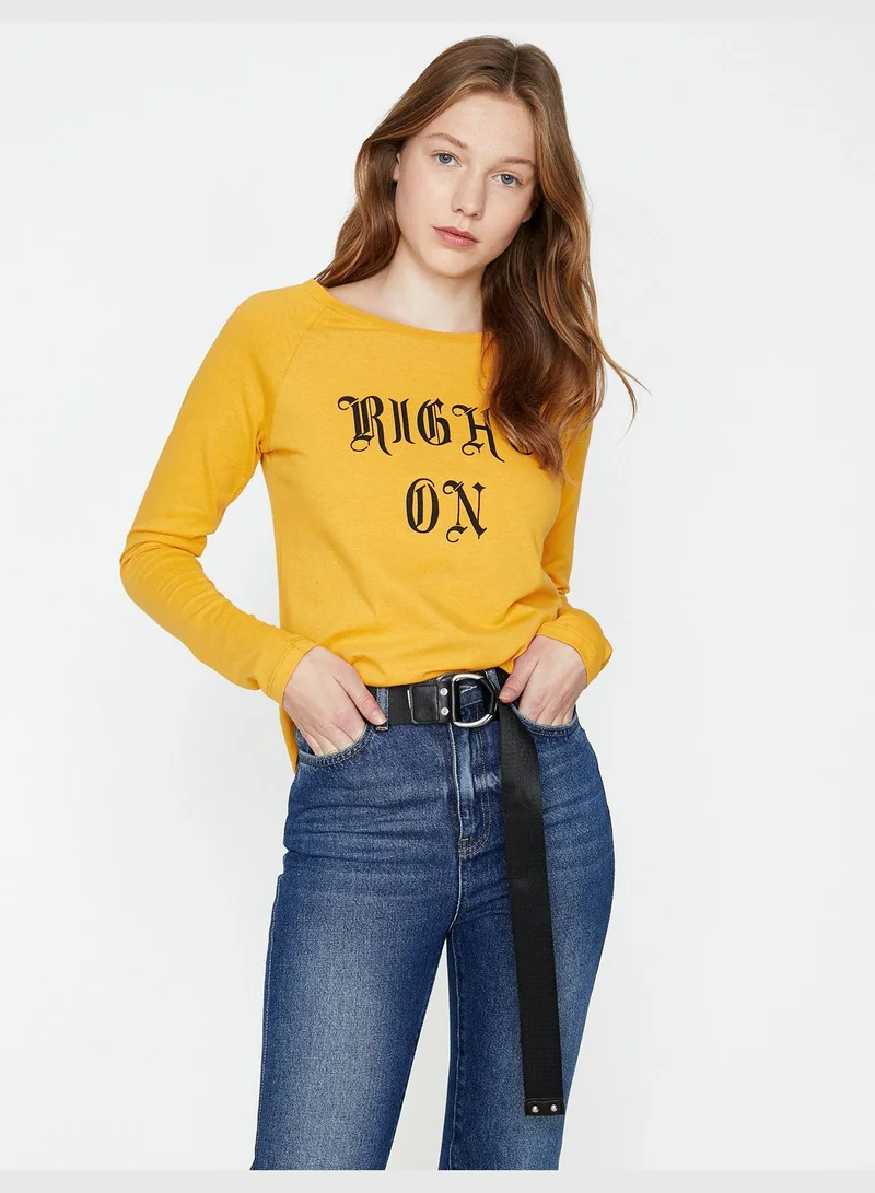 Crew Neck, Long Sleeve, Letter Printed T-Shirt