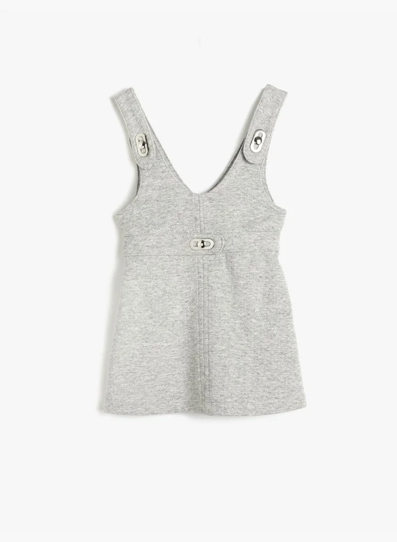 KOTON Mini Dress Metal Button Detail Sleeveless V Neck