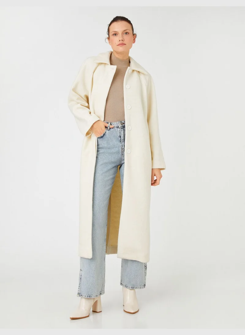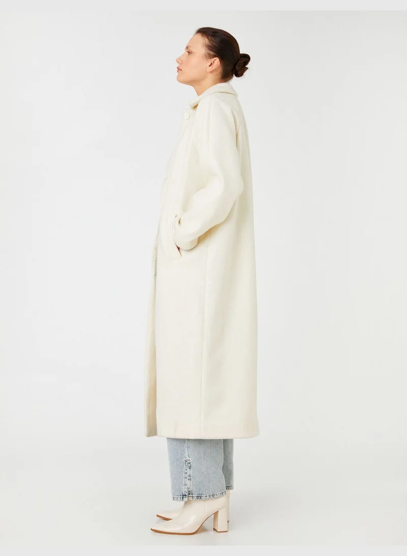 KOTON Oversized Coat Hide Button Lappel Neck Pocket