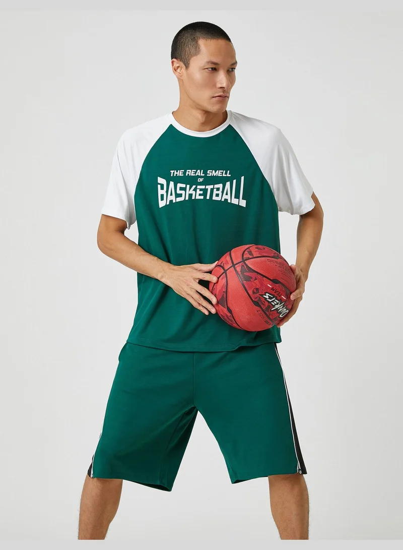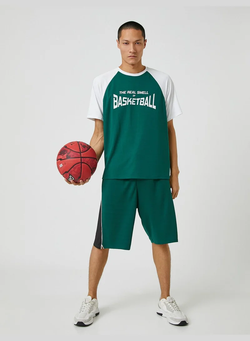 KOTON Oversized College T-Shirt Raglan Sleeve Basketball Printed Crew Neck