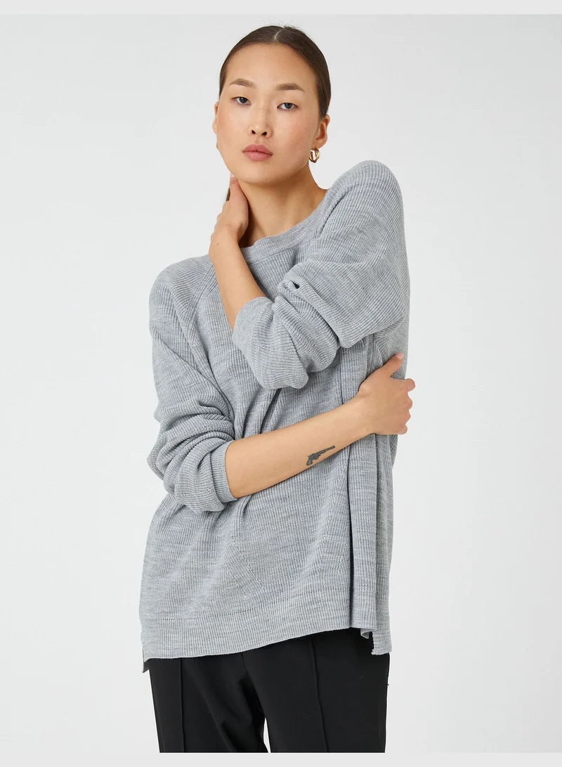 KOTON Oversized Tricot Sweater Reglan Sleeve Crew Neck