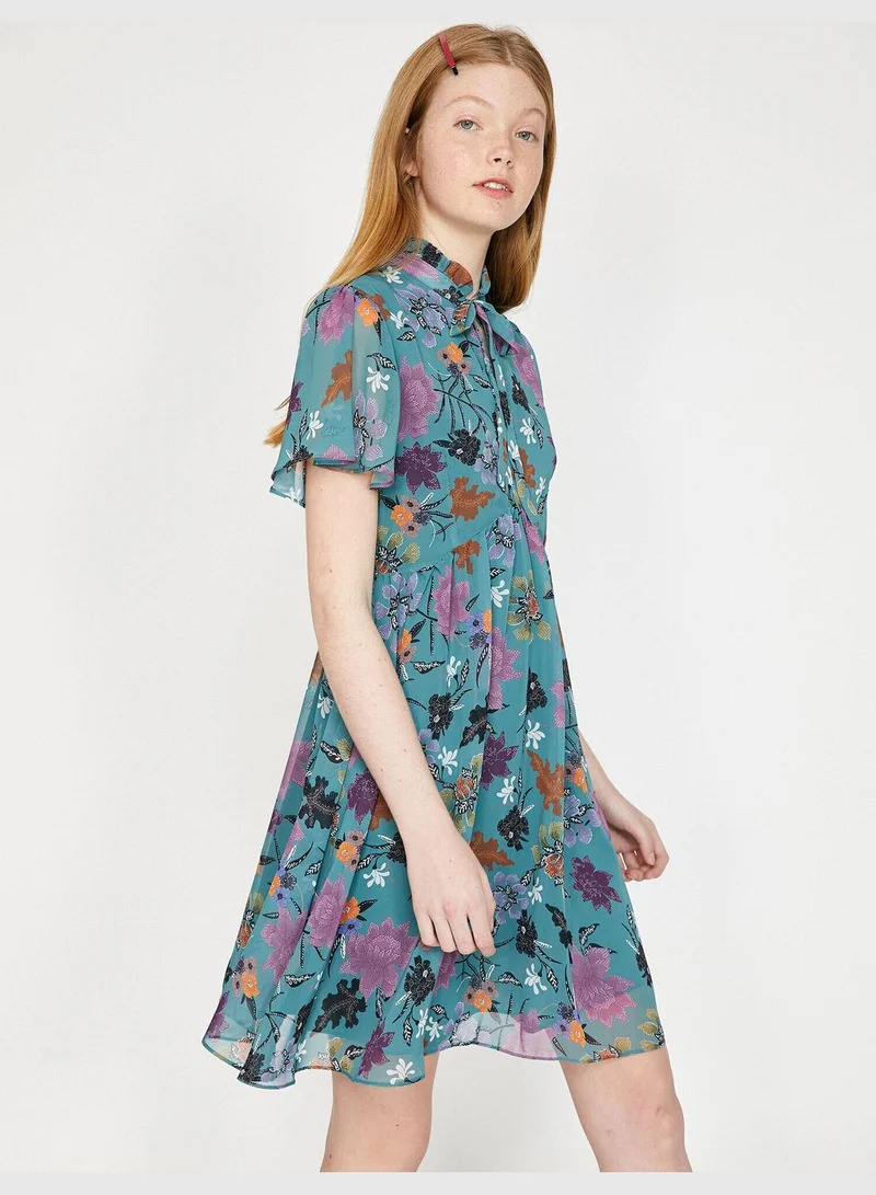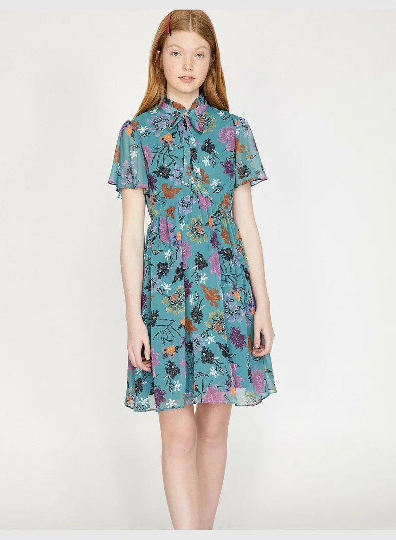 Neck Detailed, Short Sleeve, Mini Dress