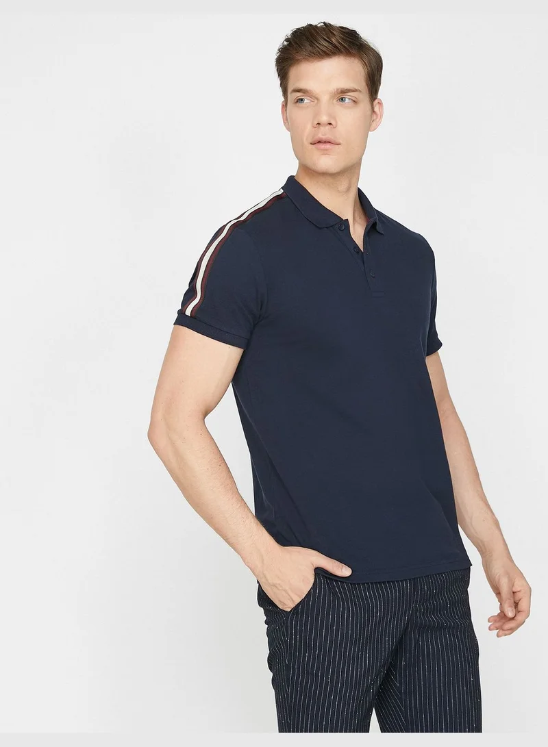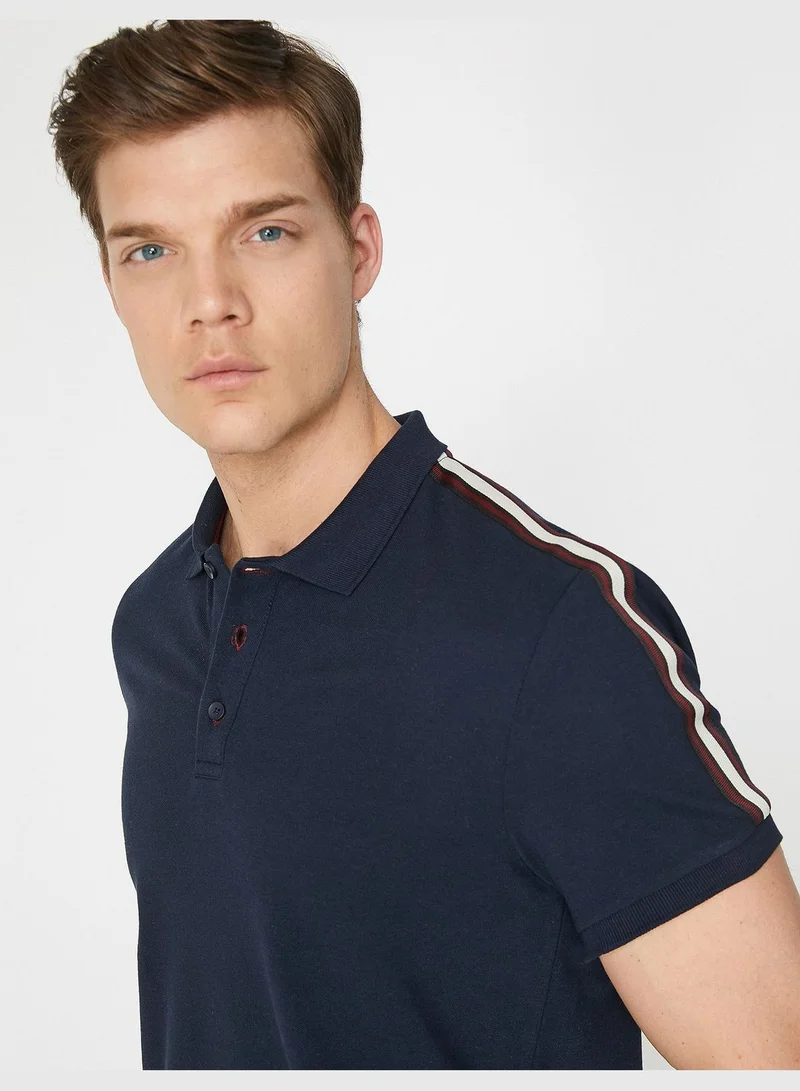 Piping Detailed, Short Sleeve, Polo Neck T-Shirt