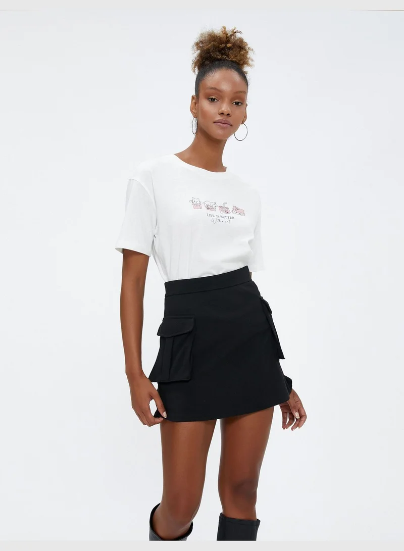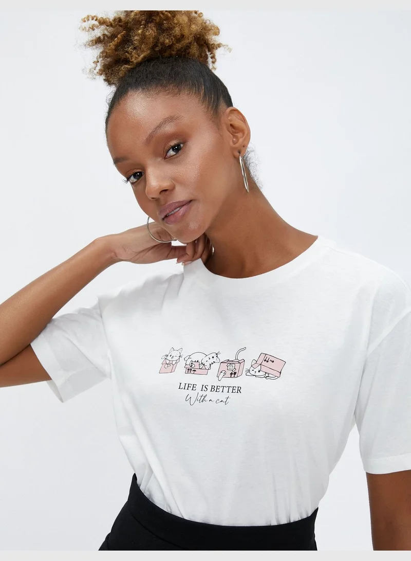 Baskılı Tişört Bisiklet Yaka Kısa Kollu Pamuklu