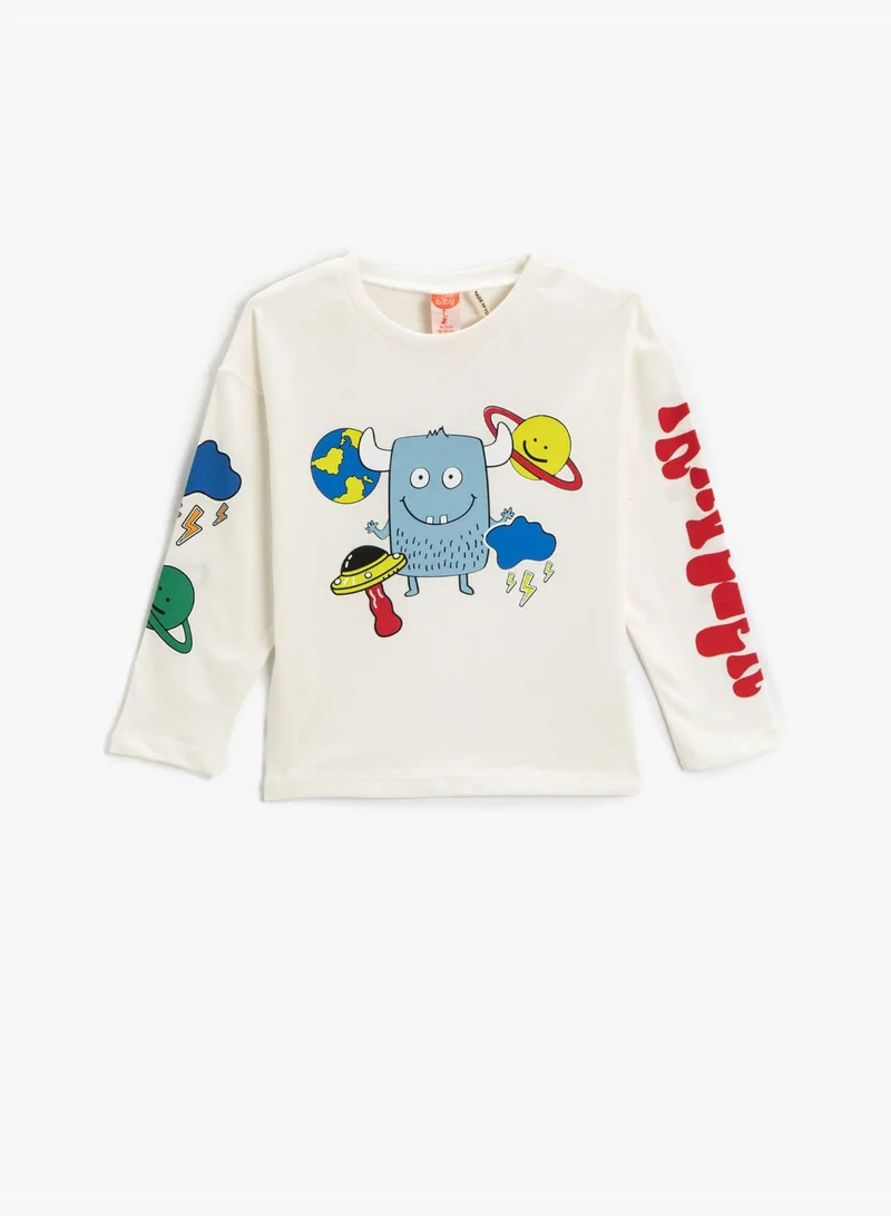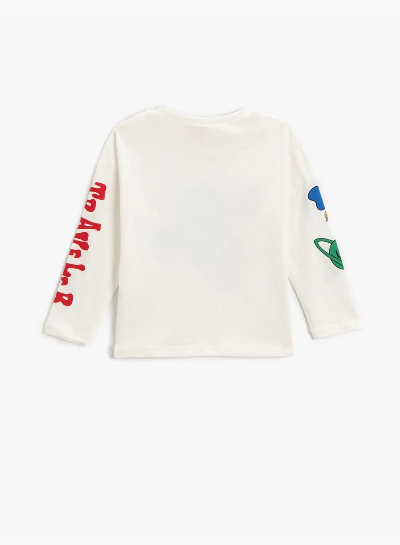 KOTON Printed Long Sleeve T-Shirt Crew Neck Cotton