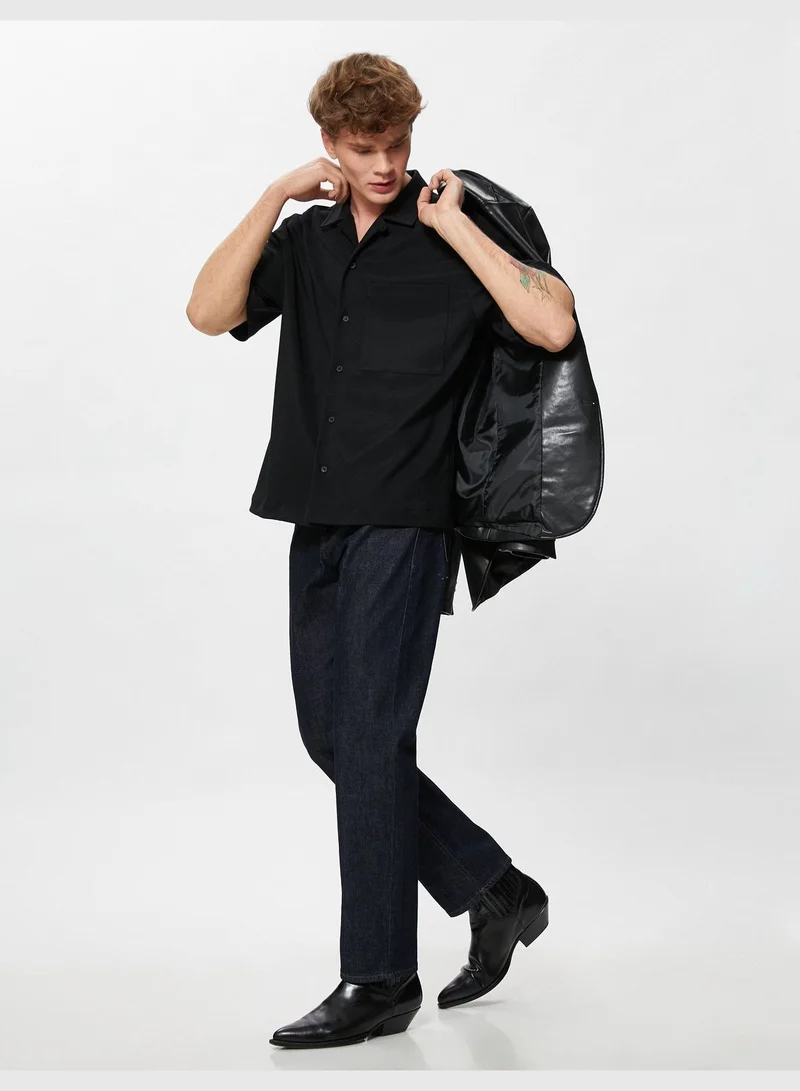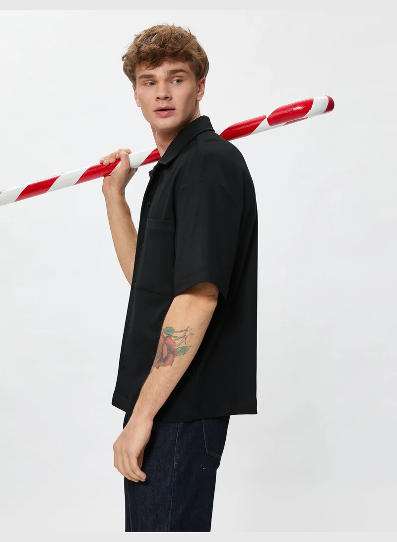 KOTON Short Sleeve Shirt Classic Neck Pocket Detailed