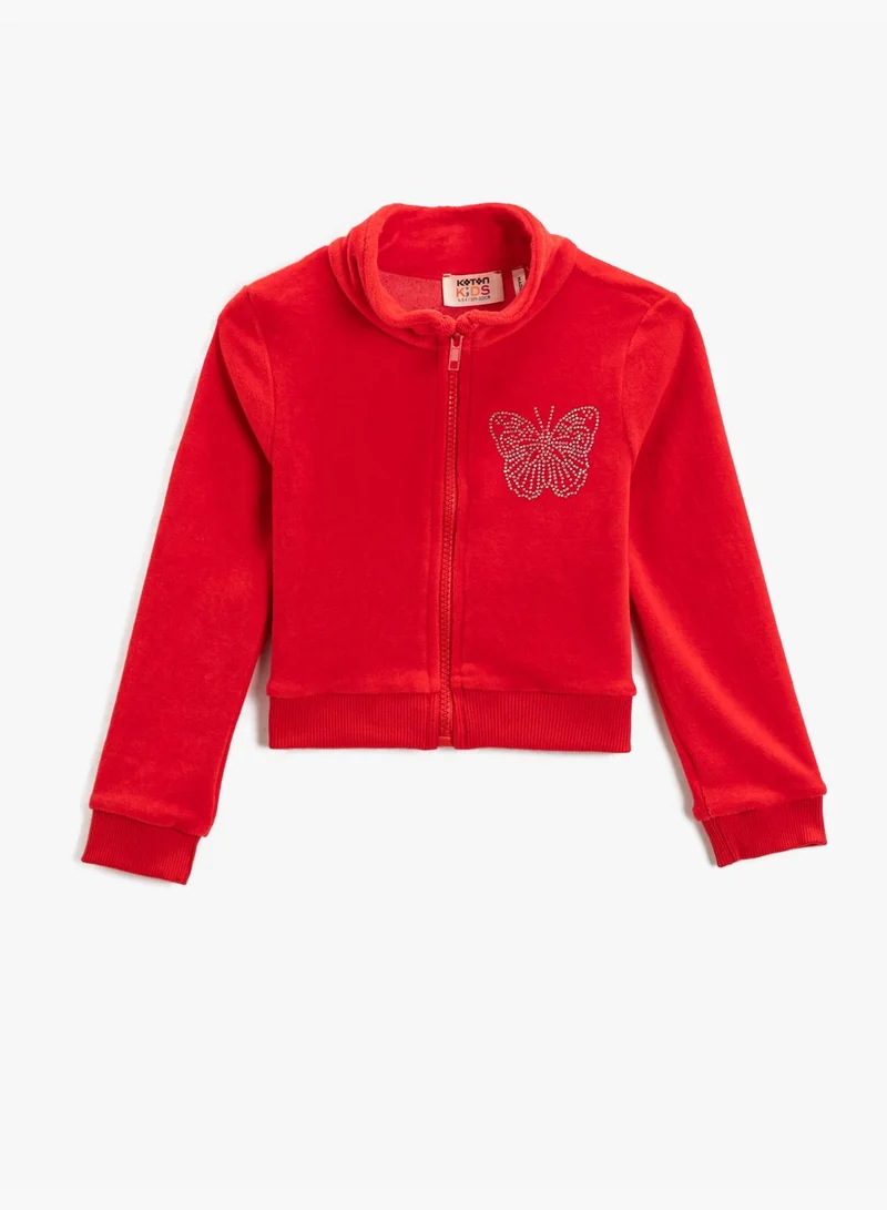 KOTON Stand-Up Neck Zipper Fleece Sweatshirt Long Sleeve