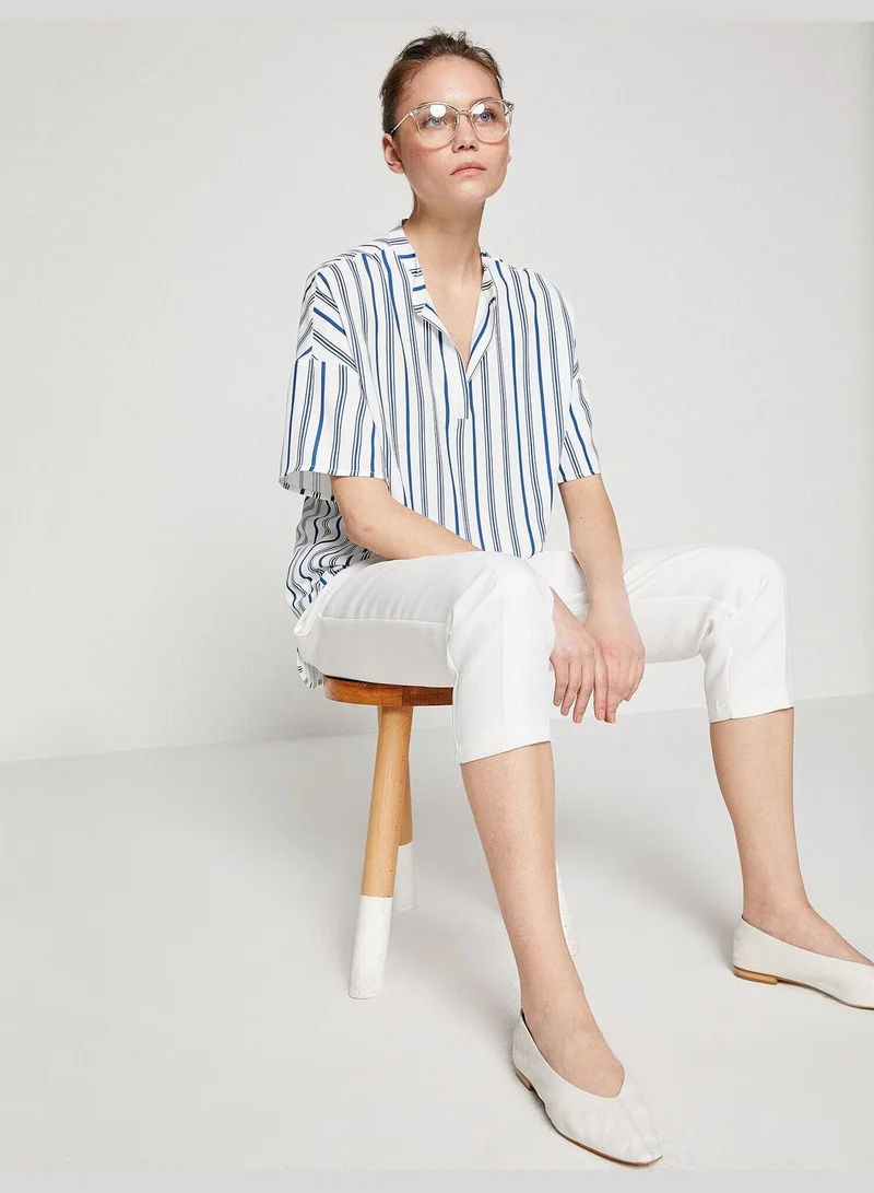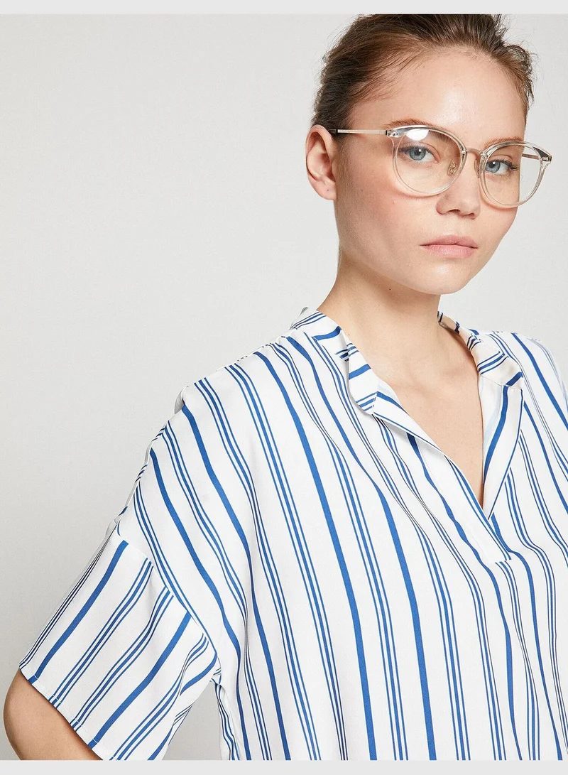 KOTON V Neck Short Sleeve Color Block Blouse