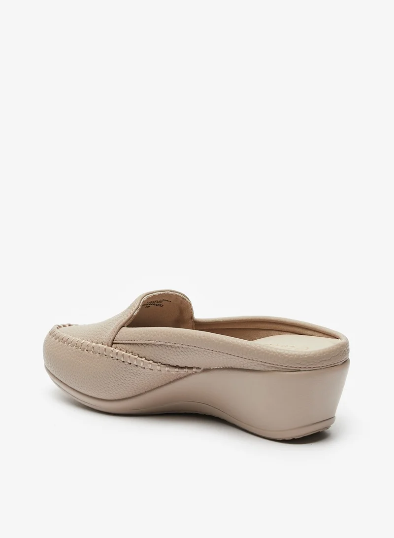 Add more smart options to your footwear collection with this trendy pair of mules. Showcasing slip on styling along with a classy tone and wedge heels, this durable pair is an apt choice for casual and semi formal events. It is made from quality material and is long lasting.