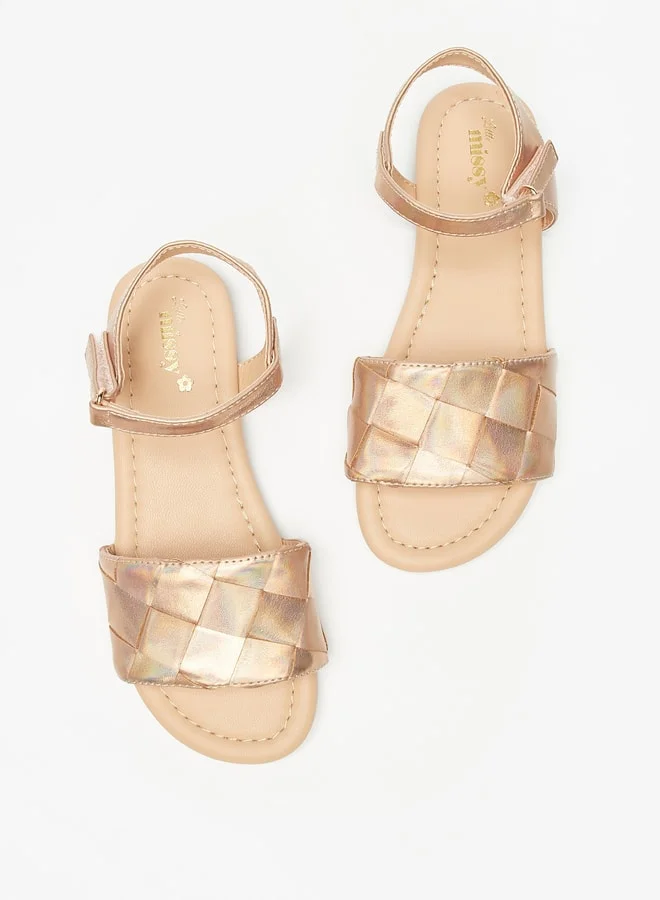 Showcasing an iridescent tone and a weave textured surface on the strap, this alluring pair of sandals will glorify the look of your daughter's overall attire