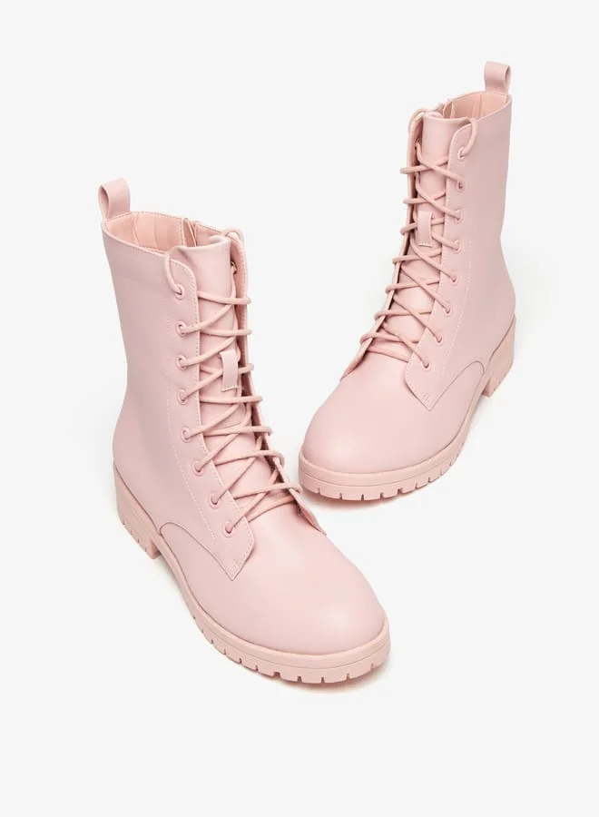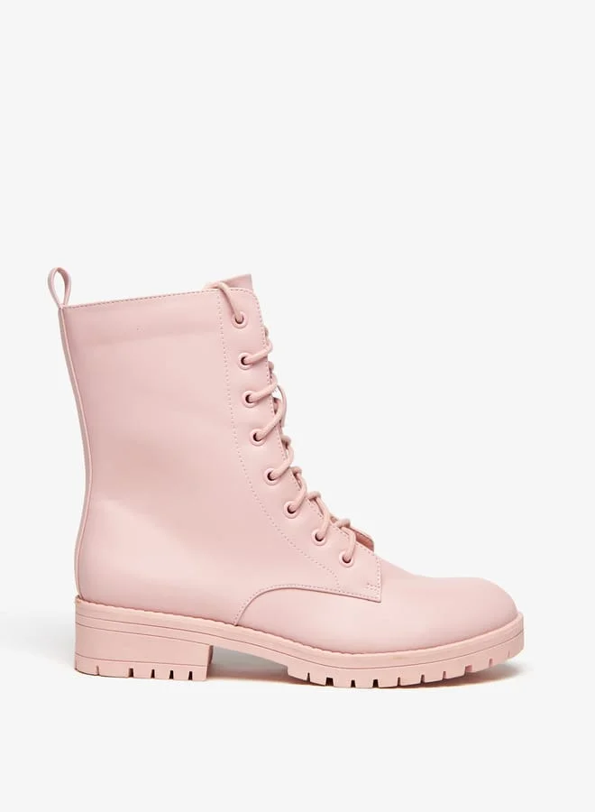 Furthermore, this pair, well crafted from durable PU material, is secured with lace-up closure