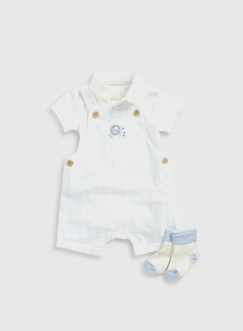 mothercare Kids Graphic Bodysuit, Dungaree & Socks Set
