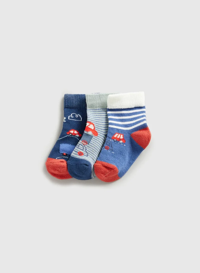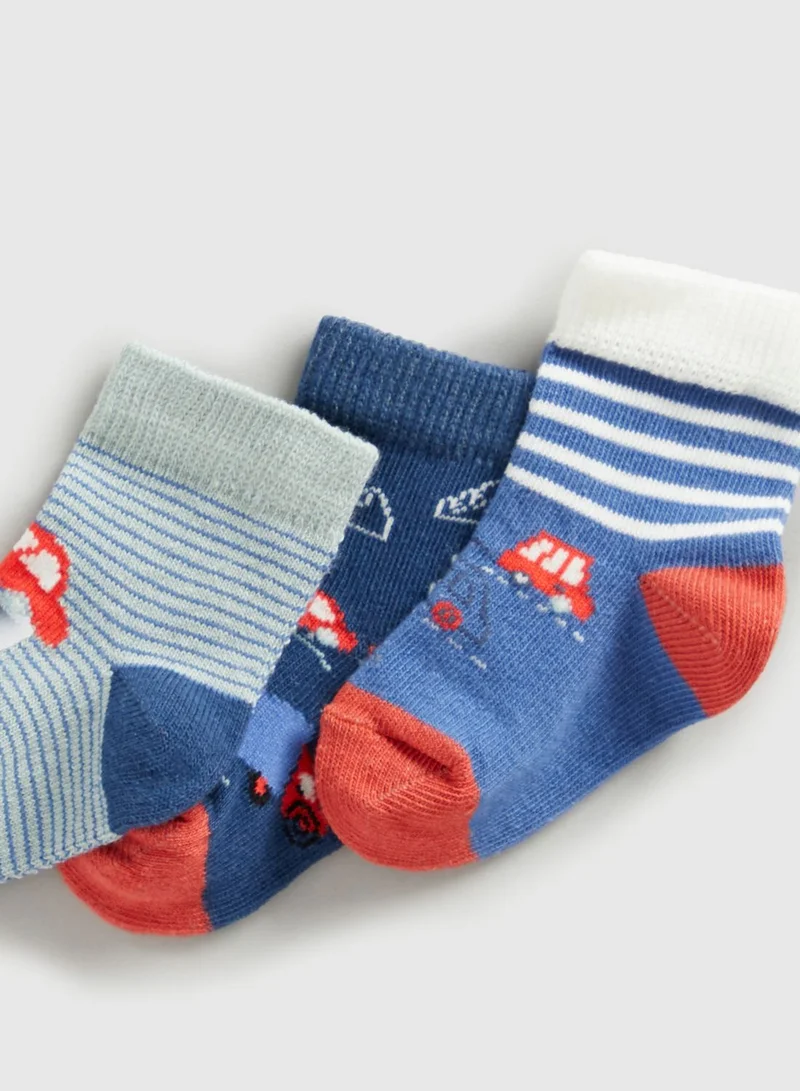 In blue tones with pops of red, these cute little socks are made for busy little feet.