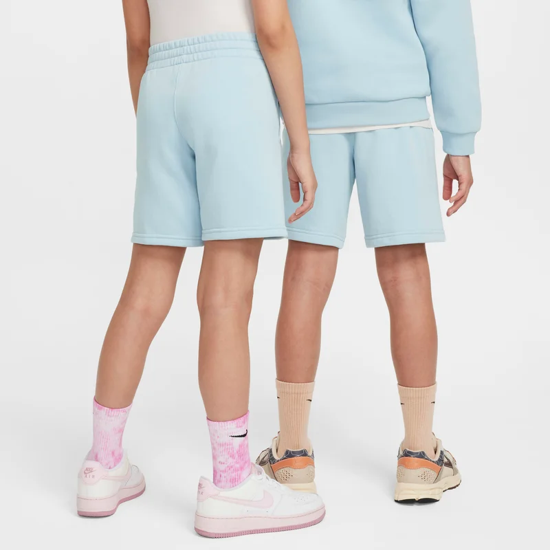 The Kids' Sportswear Club Fleece Shorts by Nike are made for warm-weather play. Crafted from soft French terry fabric, these shorts offer lightweight comfort and a classic feel—perfect for every adventure.Key FeaturesLightweight French terry fabric for a soft, breathable feelElastic waistband with internal drawcord for a secure fitAngled side pockets for easy storageMore DetailsInclusive fit designed for all kids to move their wayPrinted Nike Futura logo for signature stylePerfect for warm days, casual wear, and active playMaterial composition: 80% Cotton, 20% Polyester