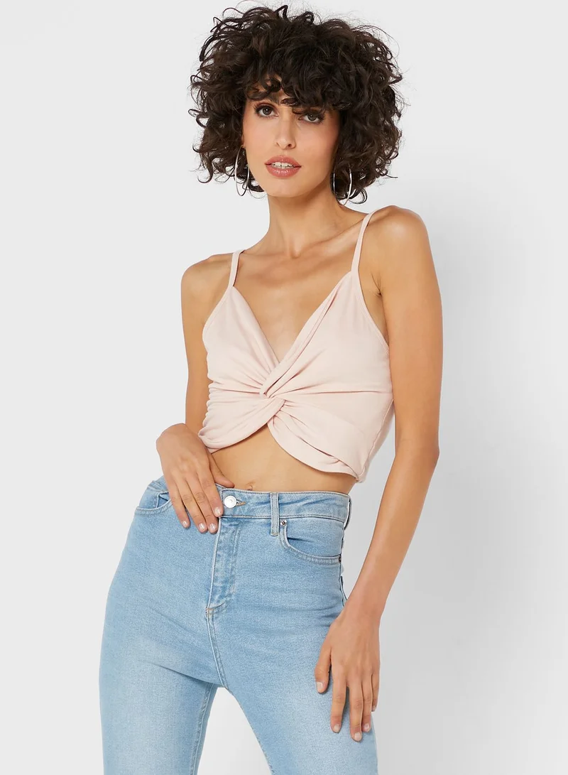With an easy-going aesthetic, update your wardrobe essentials with this knot detail crop top.