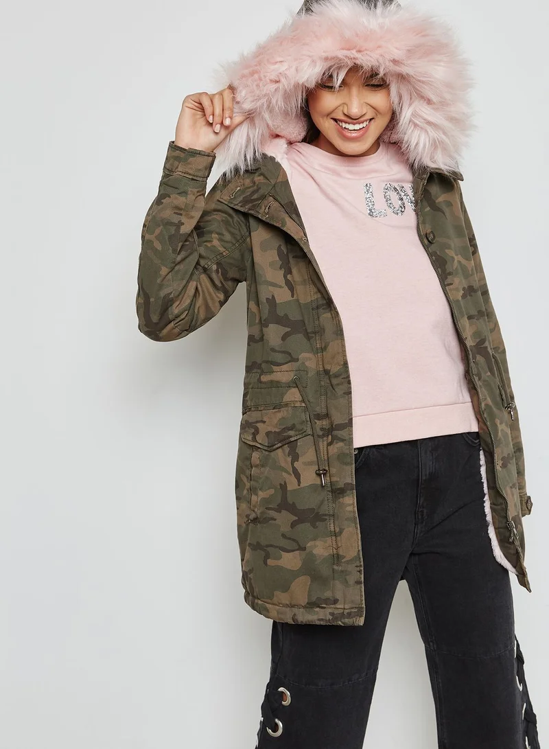 ONLY Camo Faux Fur Longline Jacket