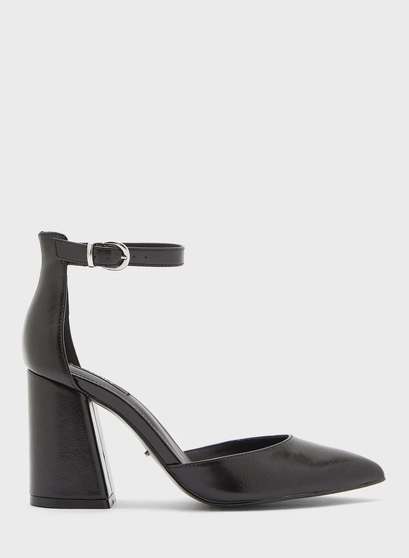 • Ankle strap with pin buckle closure