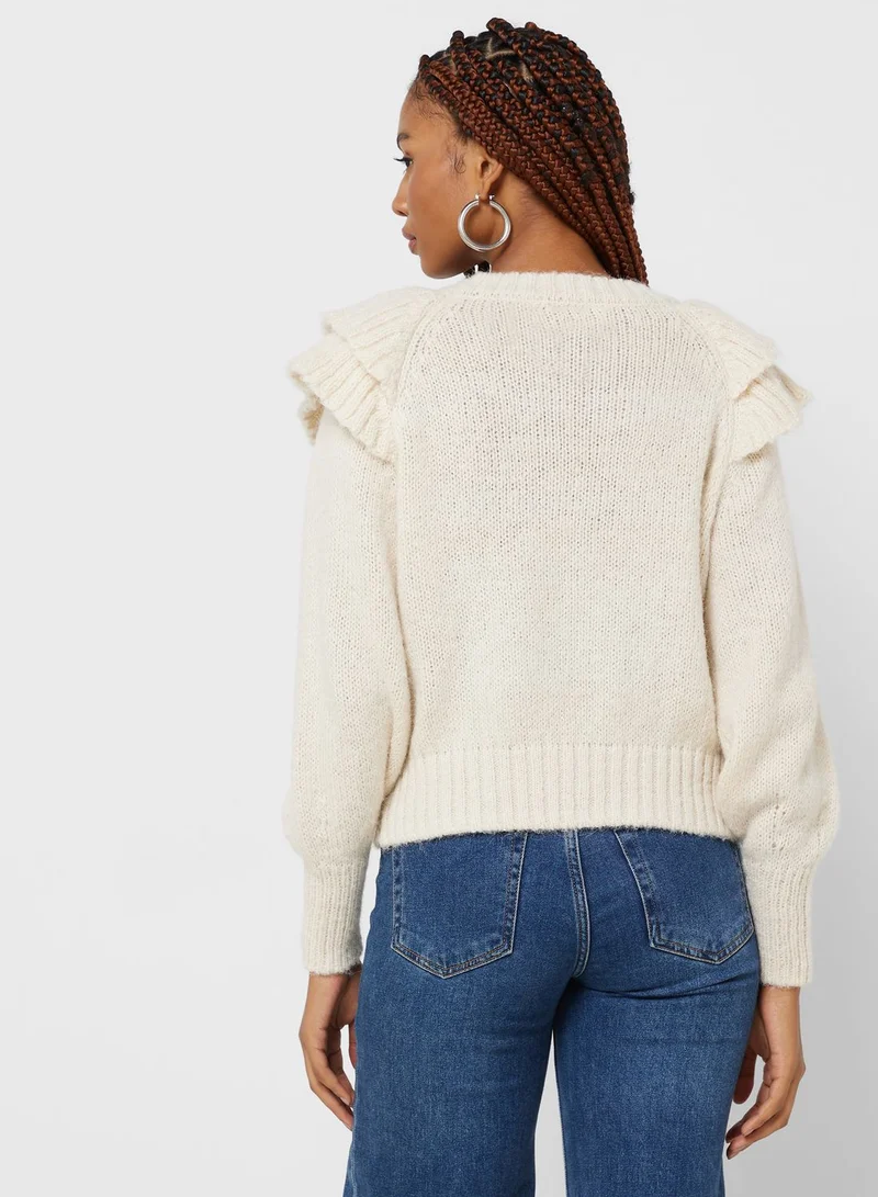 Soft and knitted acrylic blend fabricRound neck with long sleevesRuffle trims to shouldersRibbed trims to neckline, cuffs and hemEach item sold separately