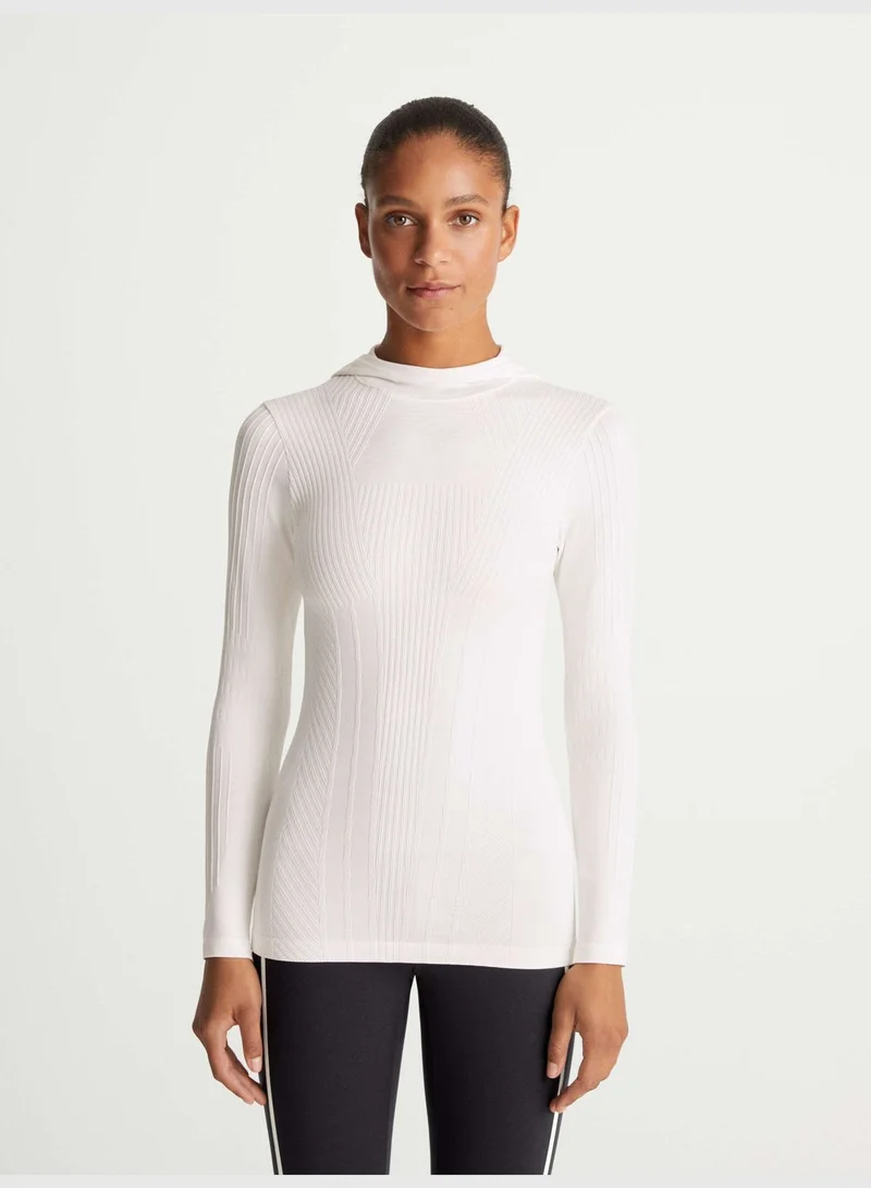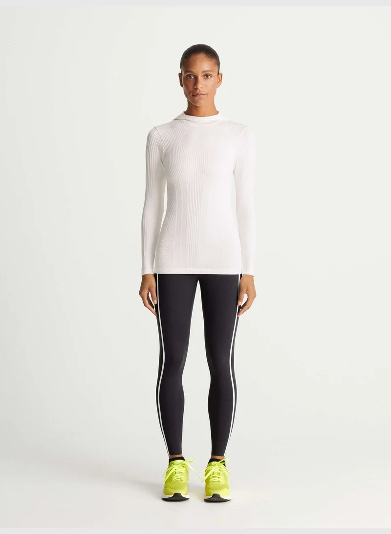 Long-sleeved T-shirt in seamless fabric. Breathable moisture-wicking fabric to keep the wearer dry and comfortable.