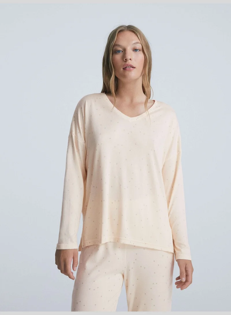 oysho Soft touch long-sleeved star T-shirt