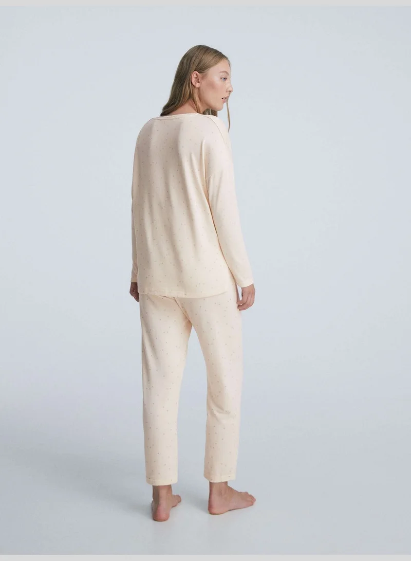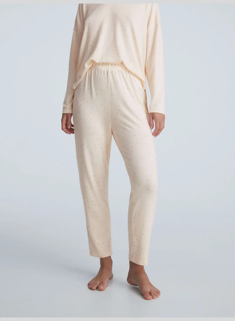 Trousers with adjustable elasticated waist. Viscose fabric with star print.