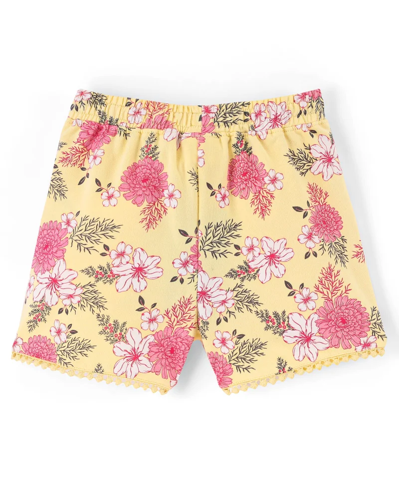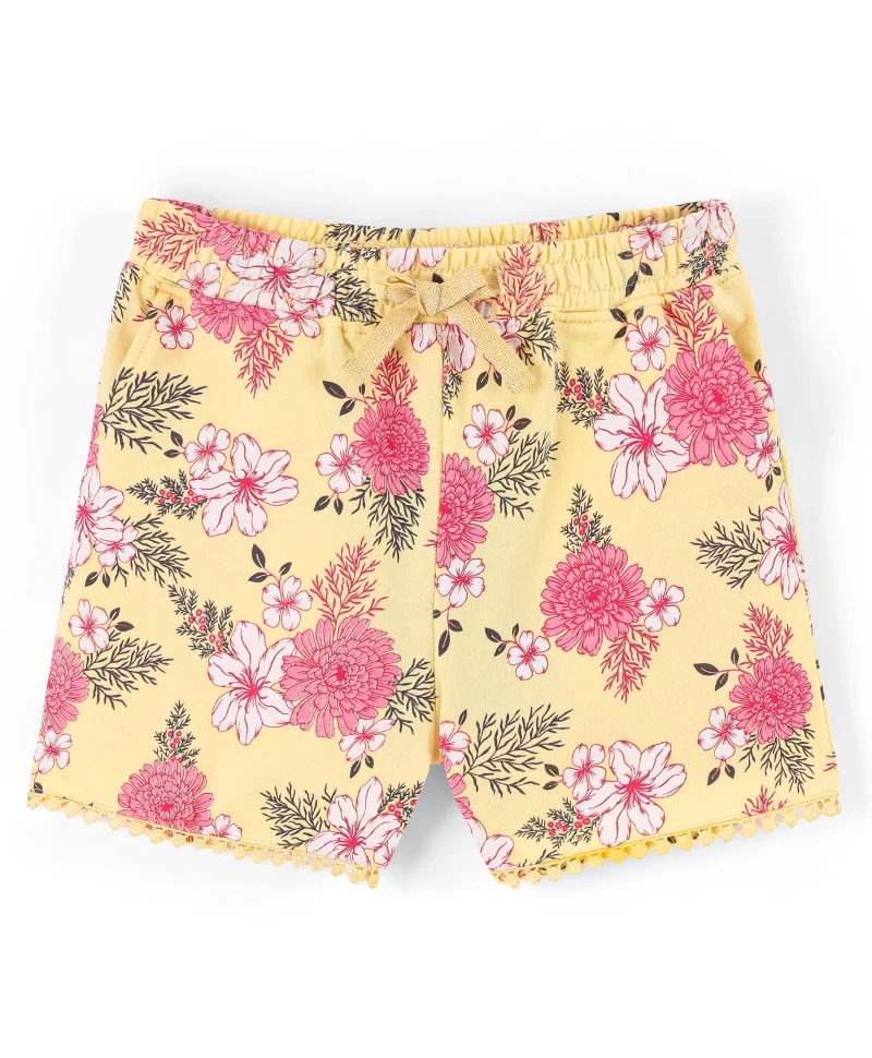 Pine Kids 100% Cotton Knit Mid Thigh Length Shorts Floral Printed - Yellow