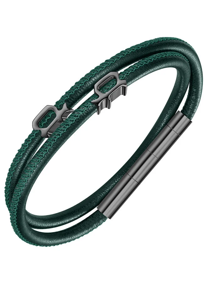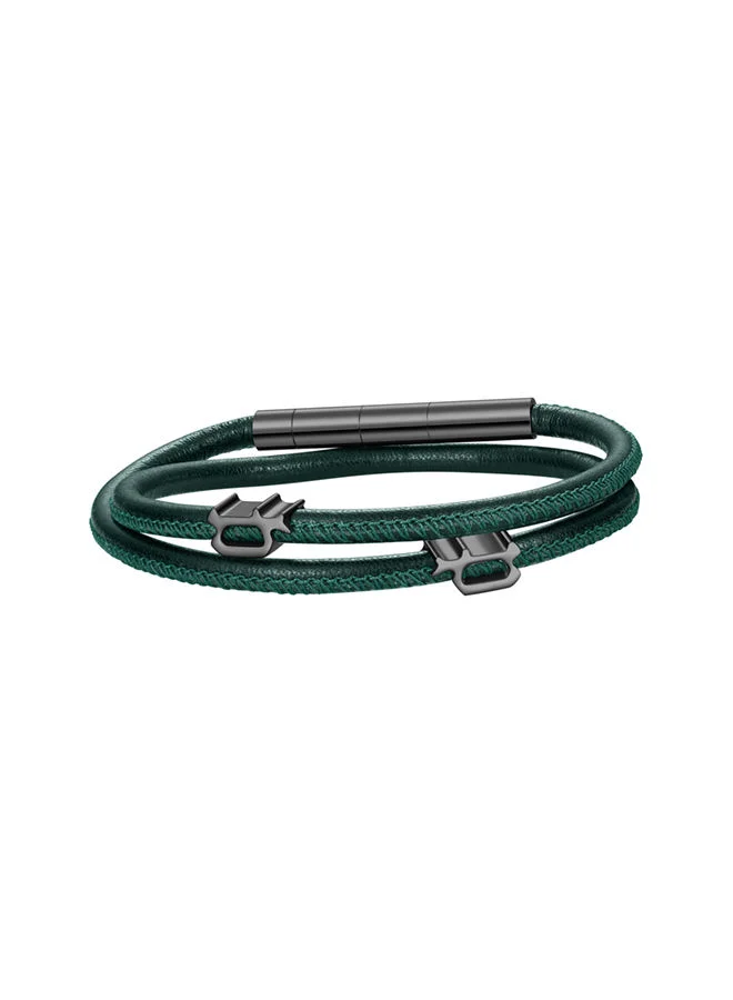 Tune up the rebel in you. The Police Pipe, wrap up bracelet, is the perfect accessory for any man who desires a bold look. Instantly recognizable by the dark green leather accentuated by the signature 'P' motifs, this bracelet creates the impression of strength and reliability.