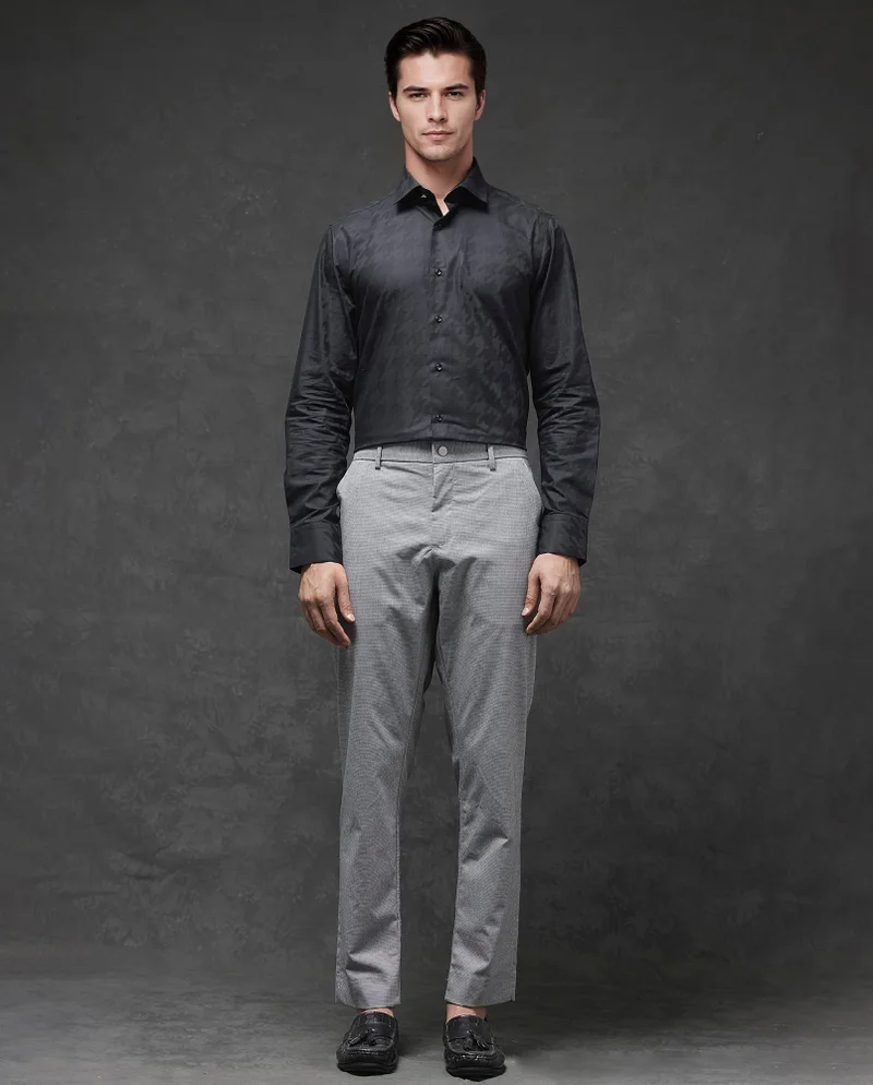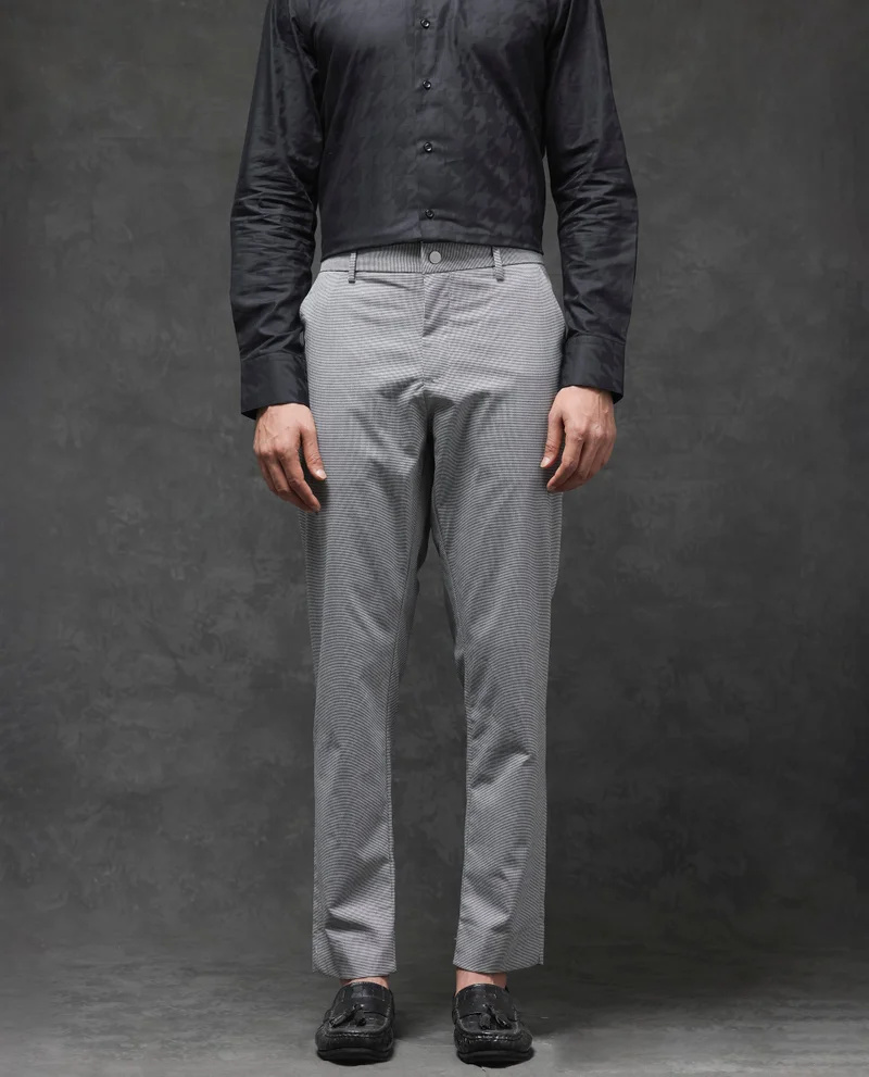 Rare Rabbit Mens Micra-1 Grey Cotton Polyester Lycra Blend Regular Fit Checks Trouser