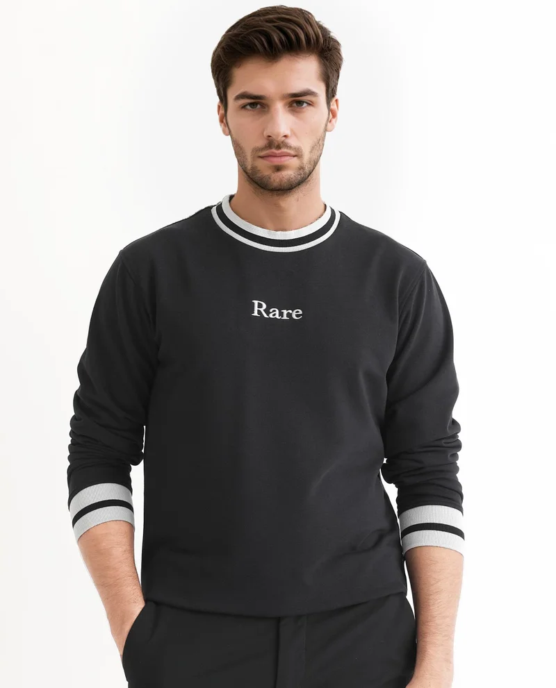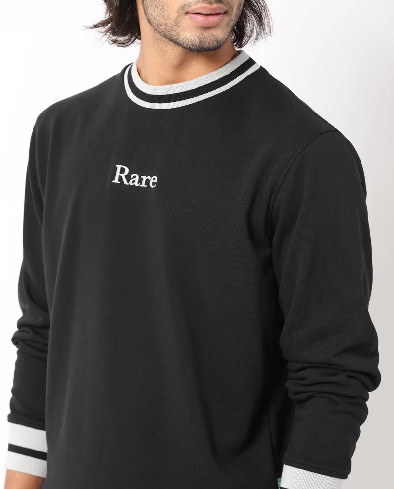 Rare Rabbit Men's Cancet Black Cotton Polyester Fabric Full Sleeves Contrast Stripe Detail Sweatshirt