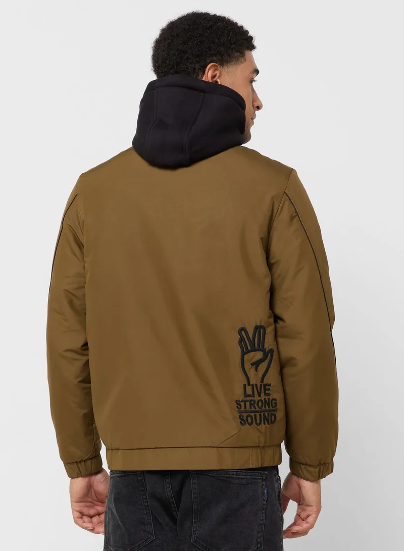 • Embroidered text design to reverse