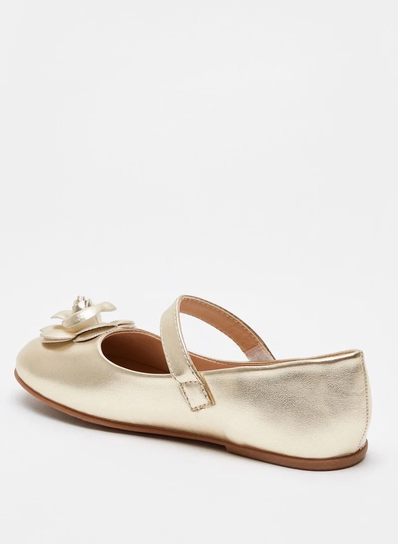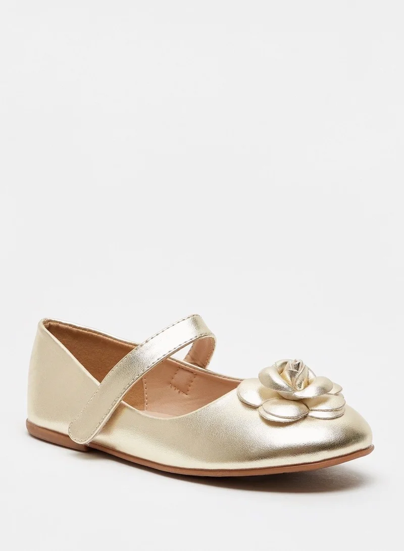 shoexpress Floral Accented Ballerina Shoes with Hook and Loop Closure
