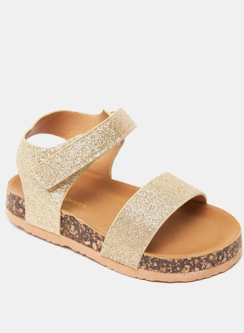 shoexpress Glitter Detail Open Toe Strap Sandals with Hook and Loop Closure