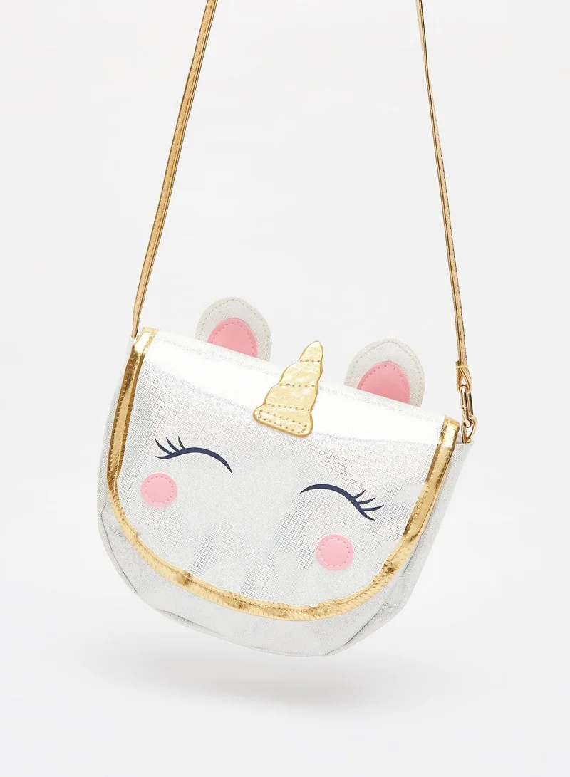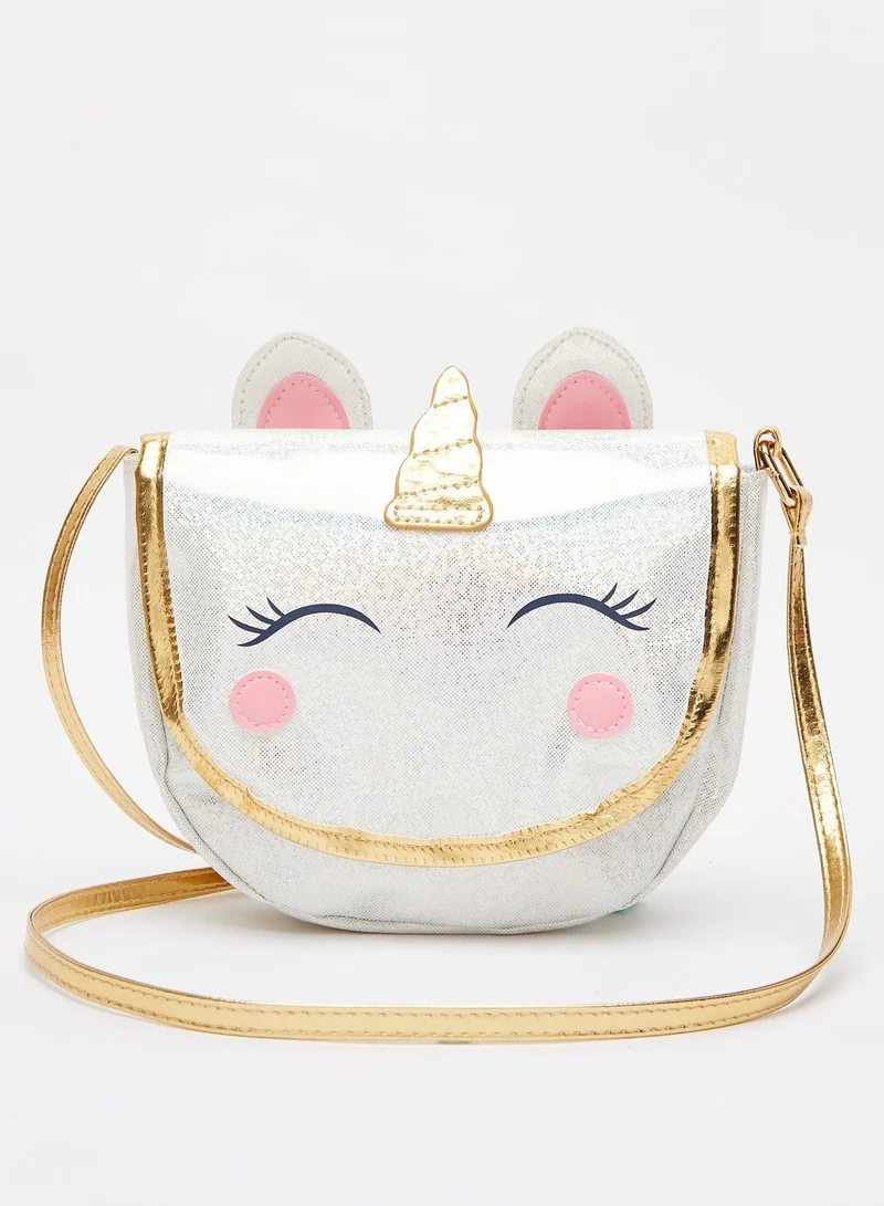 Presenting a whimsical unicorn theme, this delightful crossbody bag is sure to become your little one's precious. The glazed finish, applique and print detail make this accessory immensely attractive. It features a perfect interior space, sturdy sling strap and flap closure. Furthermore, this lightweight bag is crafted from quality material and has lasting usage.