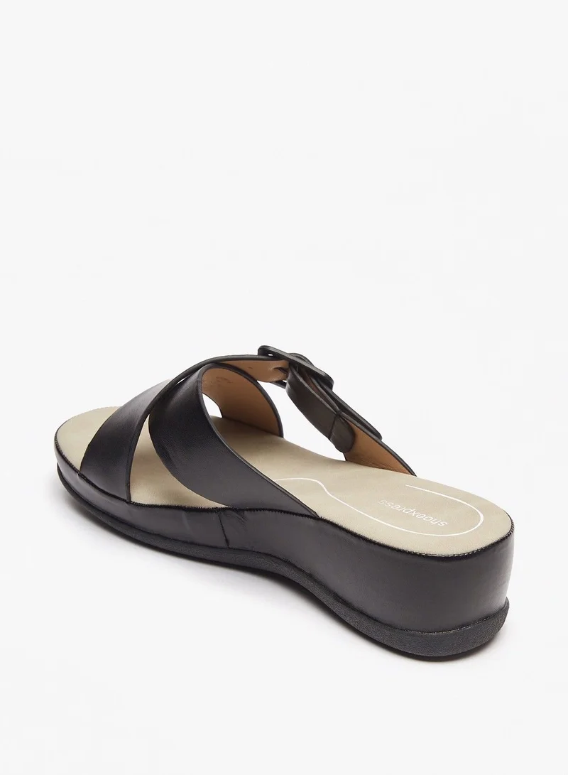 shoexpress Solid Slip On Cross Strap Sandals with Buckle Accent Black
