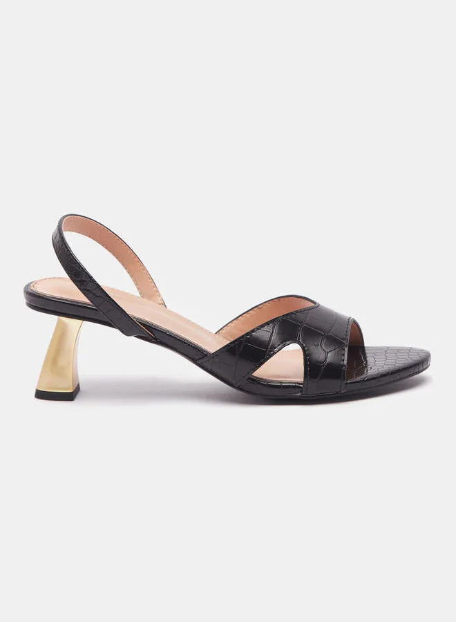 Highlighting An Animal Textured Finish, This Chic Pair Of Sandals Are Apt To Style With Your Off-Duty Outfit. The Open-Toe And Slip-On Pattern Offer Ease To Wear, While The Kitten Heels Lend Optimum Support As You Take Each Step. Furthermore, This Pair Is Well-Crafted From Pu Material And Has Good Durability.