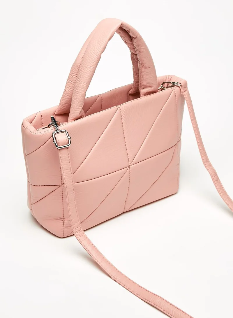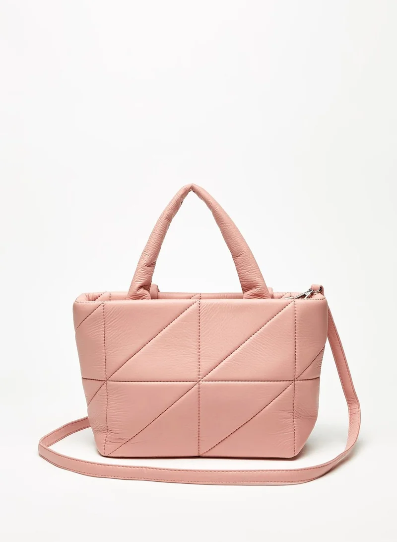 Carry this trendy tote bag for a revamped style statement. Fashioned with impressive stitch detail and a lovely tone, it exudes a fine look. The bag features an adjustable strap and double handles that make it easy to carry while the spacious compartment lends utmost utility.