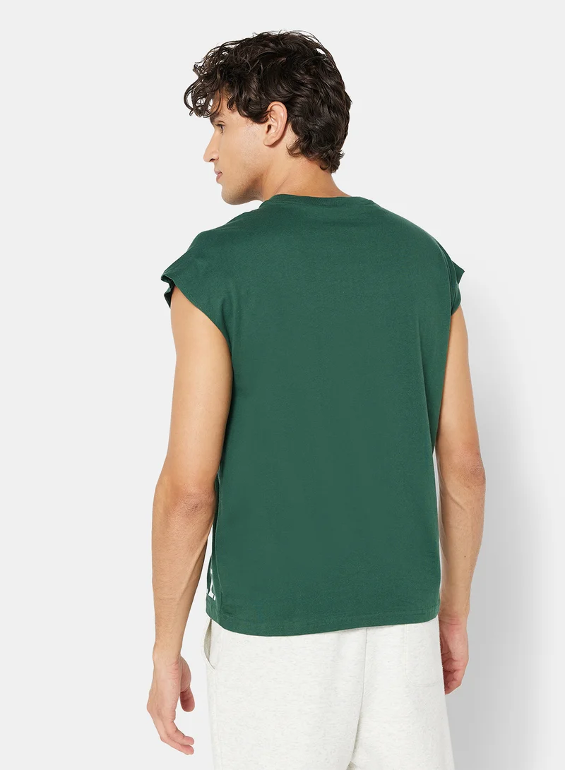 Eco-Friendly Logo Cap Sleeve T-Shirt Dark Green