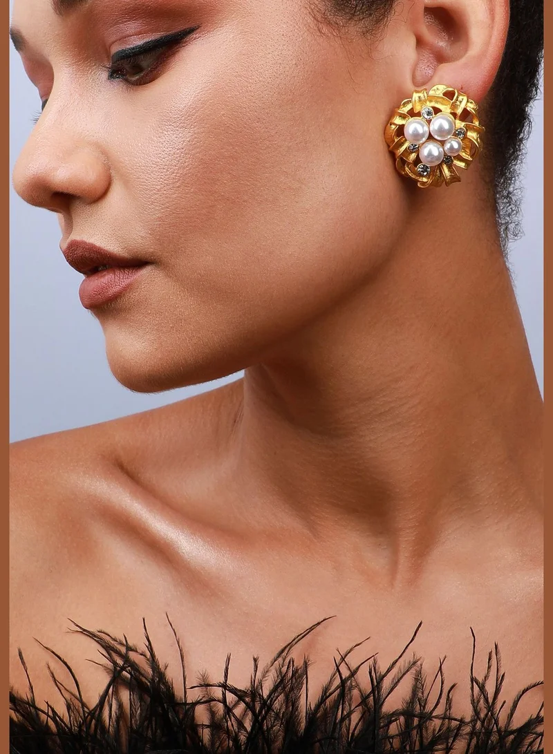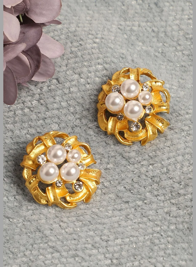 SOHI Gold Plated Pearls Western Wear Stud For Women