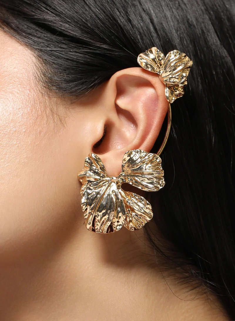 Women The Withering-Petal Cuff Earrings | California Gold Colour | One-Size | Metallic Alloy Material | Slip On Closure | Earrings For Casual & Evening Wear