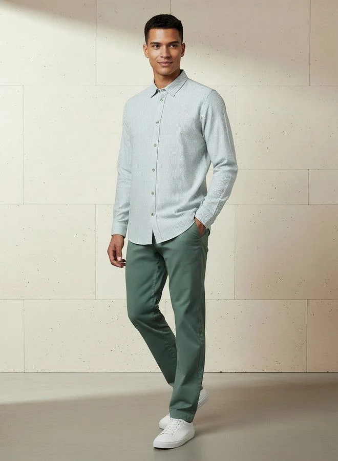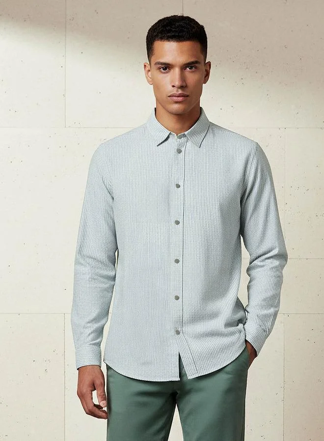 Men Regular Fit Collared Striped Long Sleeve Shirt