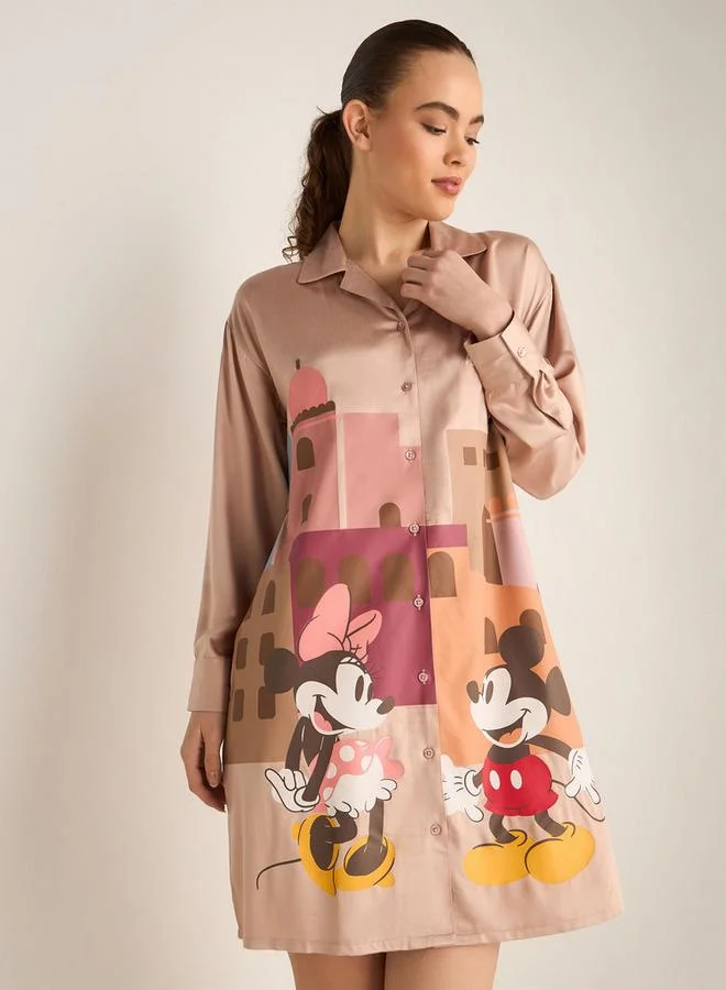 Splash FAV Mickey Mouse and Minnie Mouse Print Collared Sleepshirt