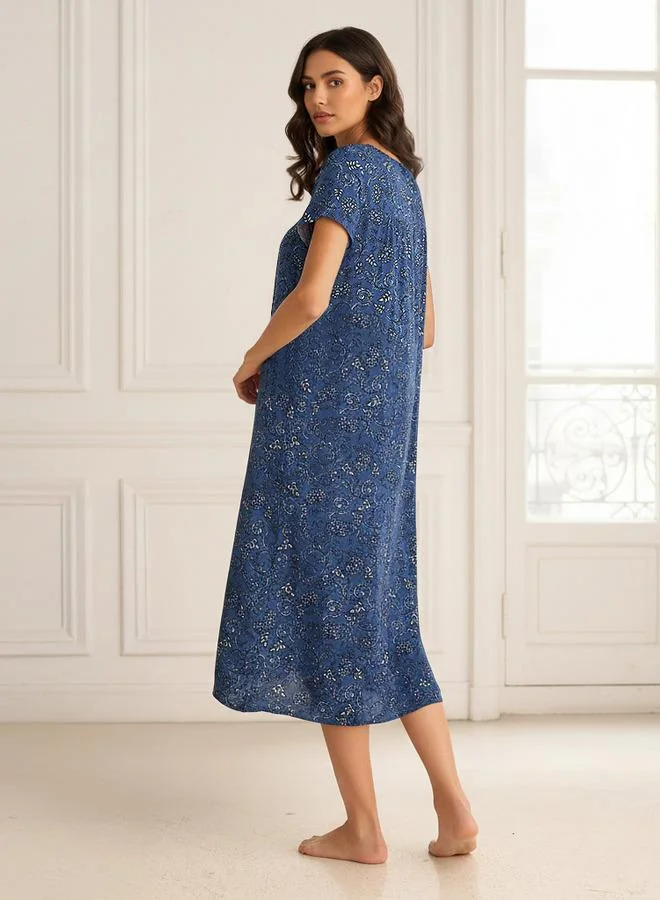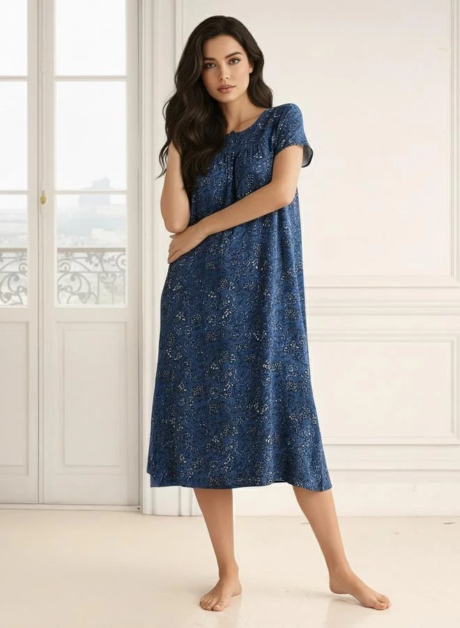 Splash FAV Midi Night Dress Short Sleeves Printed Viscose
