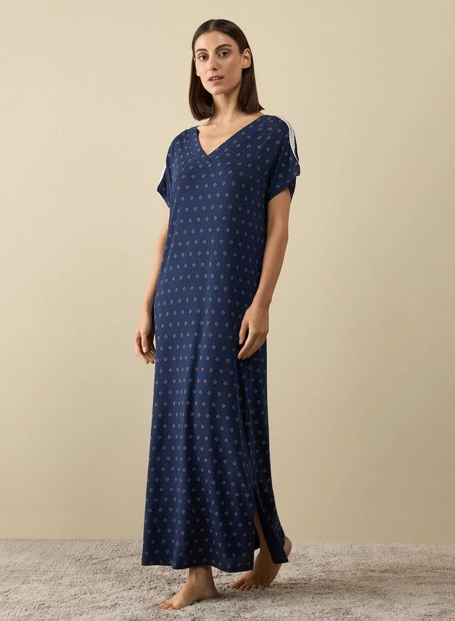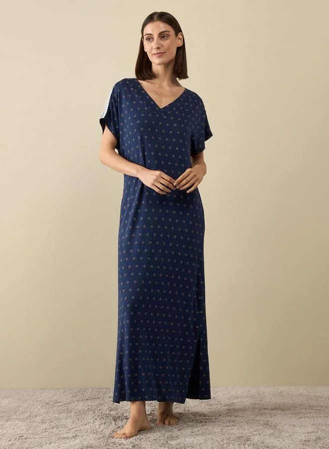 Splash FAV Printed V-neck Night Gown with Extended Sleeves