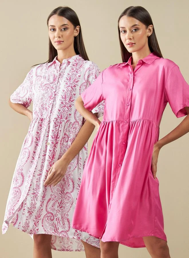 Splash FAV Set of 2 - Assorted Sleepshirt with Collar and High-Low Hem