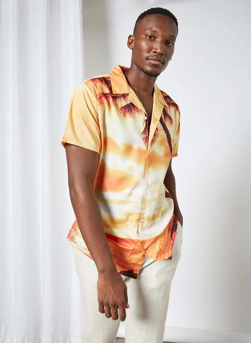 Beach Print Shirt Orange