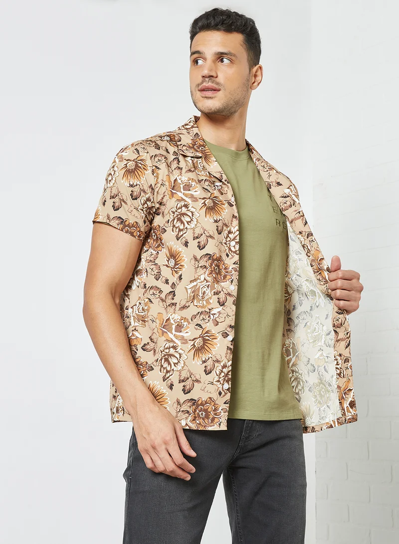 Floral Print Shirt Brown