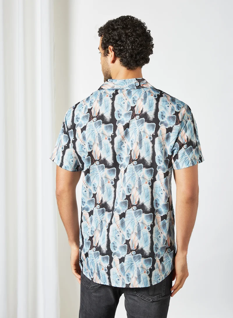 Printed Short Sleeve Shirt Blue