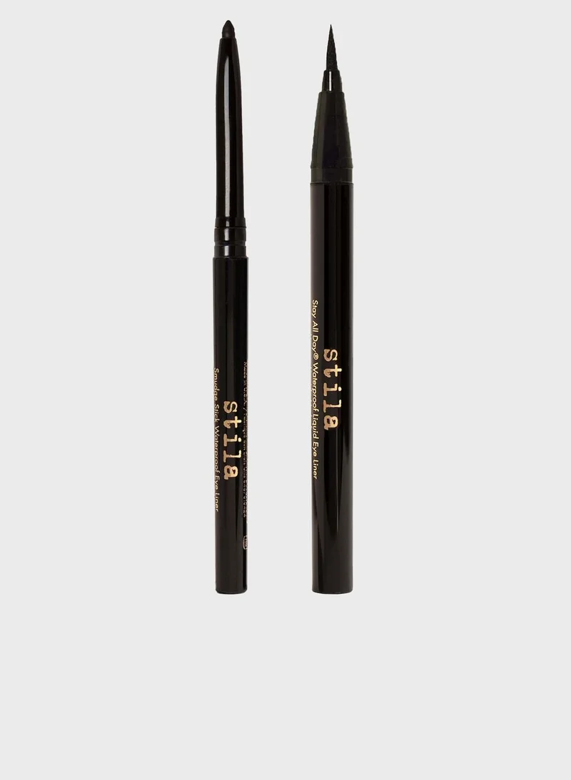 Full size set consisting of : 1 x Stila's iconic, award-winning Stay All Day Waterproof Liquid Eye Liner in Intense Black - Our #1 selling liquid eyeliner that allows you to draw from thin, precise lines to bold, dramatic strokes. 1 x Stay All Day Smudge Stick in Stingray. A legendary multi-tasker that can be used as a classic pencil or a smudgy eyeshadow