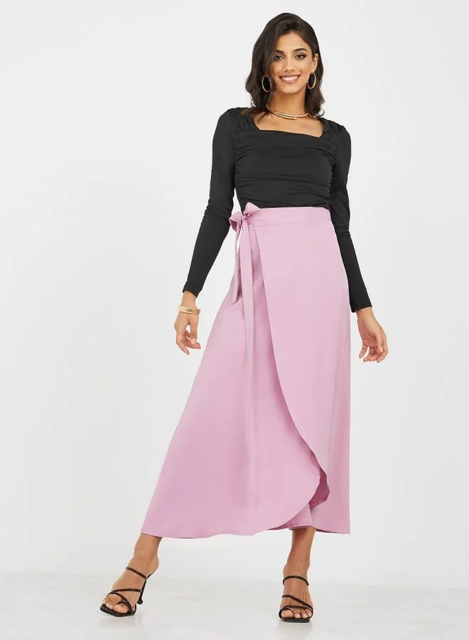 Styli A-Line Wrap Maxi Skirt with Side Tie
