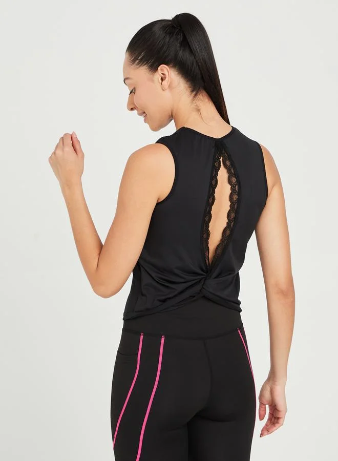 Styli Active Lace Trim Open Back Activewear Vest